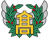 校章は学校のシンボルです。帯広三条高校の校章は、昭和25年4月の改称と同時に、新入生・在校生に公募する形をとりました。多数の応募の中から、当時3年生の五十嵐義樹さんの考案を最高のものとして決定しました。 ・三翼は、平和と三条を表し、十勝川・札内川・帯広川を意味します。 ・月桂樹は、栄誉を表しています。 ・高の字は金色、三翼は銀色、月桂樹は緑・赤色となります。 |