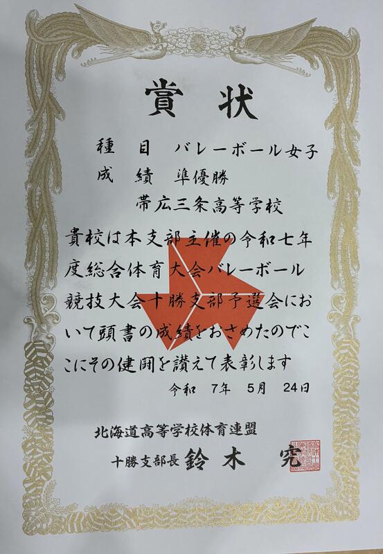 [帯広三条高校 女子バレーボール部のページへようこそ]