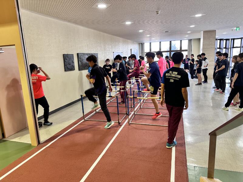 午前は短距離、中長距離、投擲部門に分かれての練習。