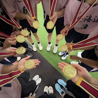 女子は10月から練習に参加してくれたソフトボール部の助っ人2人のおかげて全道優勝に輝くことができました。助っ人の2人が練習に積極的に、楽しんで、元気に参加してくれて私たちもすごくモチベーションがあがりました。大会中もたくさん応援をしてくれてみんなにパワーを与えてくれました。心から感謝しています。